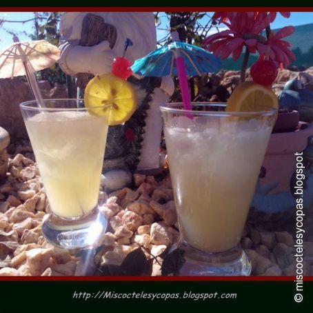 En la coctelera ponemos hielo picado, metemos los ingredientes, agitamos hasta enfriar la coctelera , llenamos la copa la decoramos al gusto de cada uno , y a disfrutarlo...
