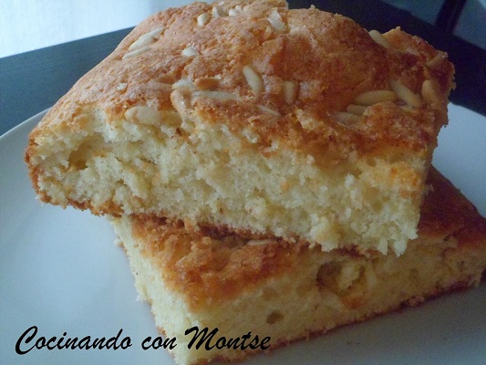 Aquí os dejo esta rica coca, que en sí es un bizcocho que hago en casa y que tengo en el blog, como el bizcocho de las monjitas,solo le añado el anís y los piñones y como veréis le pongo unos sobres de gaseosas que hace que quede muy esponjoso y rico.