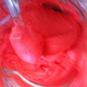 En este caso utilicé el colorante rojo,porque usé el marshmallow fluff rosa.Dividimos la mezcla en los dos moldes y a horno durante 25 minutos,pero ya sabéis que esto es orientativo.