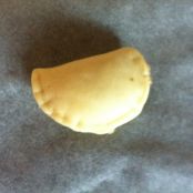 Estiramos la masa y con un vaso vamos haciendo círculos,ponemos un poco del relleno en el centro,y la cerramos,uniendo los bordes con los dientes de un tenedor.