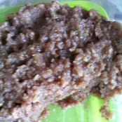 Para esta receta utilizamos 2 kg de nueces,hay que pelarlas y picarlas,una vez picadas,añadimos el azúcar,a gusto como 1 y 1/2 vaso,y el vino tinto poco a poco para que no quede demasiado líquido el relleno.
