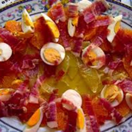 Para montarlo se colocan las rodajas de limon y naranja en el fondo del plato, encima se coloca el chorizo y el huevo.