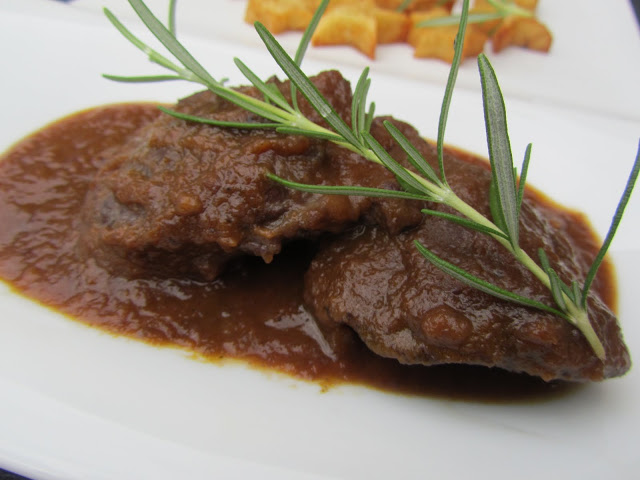 Volcar sobre las carrilleras y cocer un poco destapado, sin cerrar la olla del todo, a fuego muy lento, dando la vuelta a la carne de vez en cuando, mínimo una hora, hasta que la carne esté muy tierna.