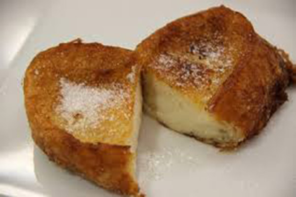 Después dejamos enfriar y vamos a usar esta leche para empapar todas las rebanadas de pan, las rebozamos en huevo y las freímos