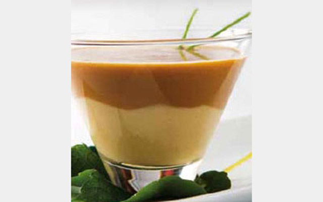 Retirar del fuego, sazonar y añadir perejil, triturar todo. Este puré de setas se añade al fondo de un vaso ancho o copa de cóctel y encima parte de la crema de lentejas.