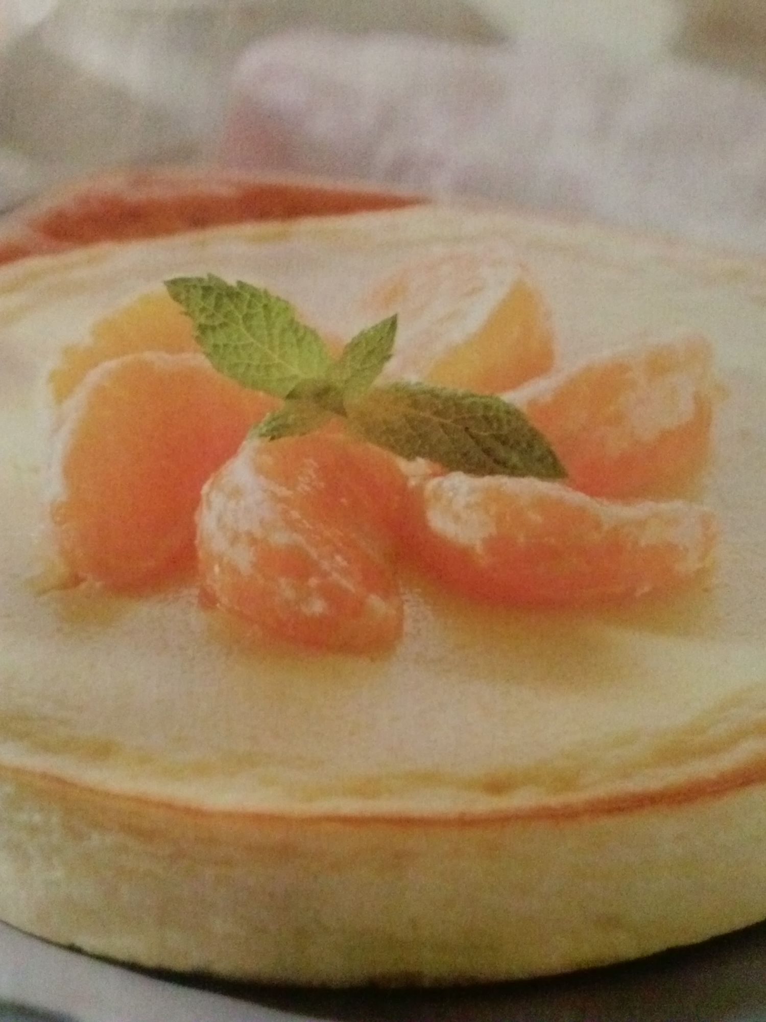 Desmolda la tarta y dispón algunos en el centro. Decórala con unas hojitas de menta y sírvela con el resto de los gajos en un cuenco aparte.