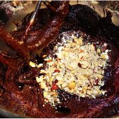 Por último, añade las avellanas y coloca en un molde previamente forrado de papel vegetal para evitar que se pegue la masa.