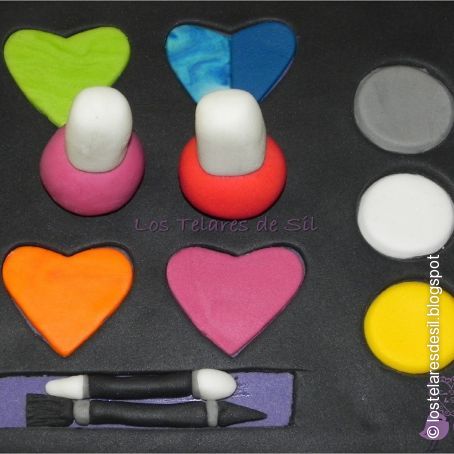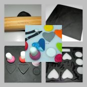 Con ayuda de moldes de galletas realiza el corte donde colocarás las "sombras de ojos". Las hice en forma de corazón y redondas.