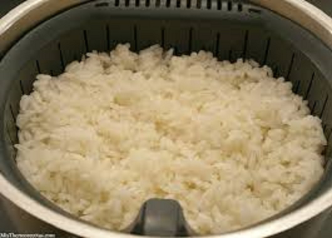 Echa el arroz a través del bocal y programa 13 minutos, varoma, velocidad 4. (Mueve el arroz con la espátula de vez en cuando).