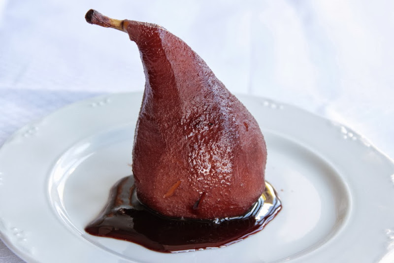 * Remover de vez en cuando con una cuchara de madera para ayudar a disolver el azúcar. El cazo debería ser adecuado al tamaño de las peras, de modo que no sobre demasiado espacio y el vino las cubra lo más posible.
