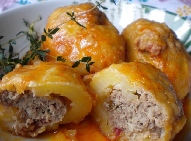 Bomba de patata rellena de carne