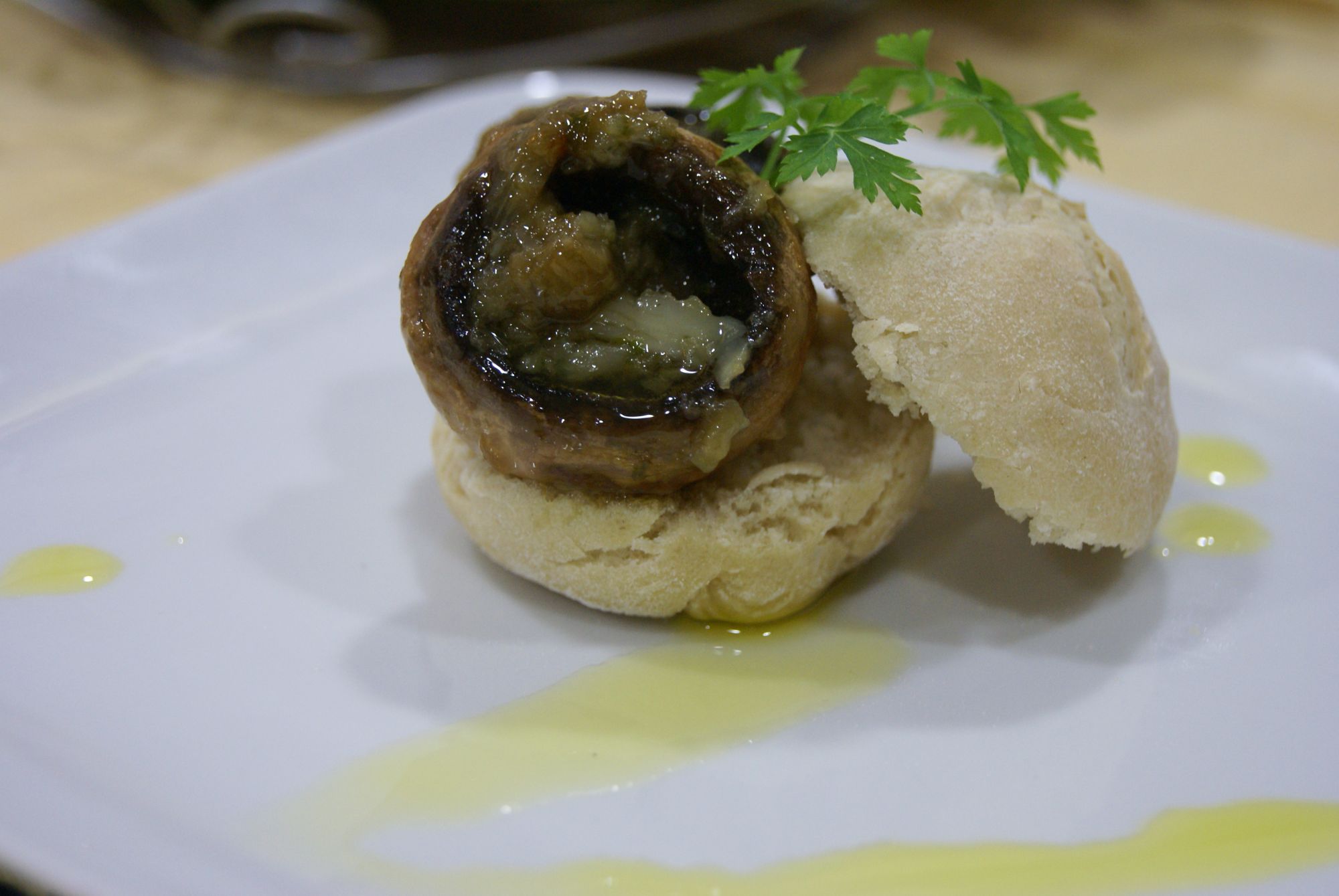 Colocamos dos de nuestros champiñones en un panecillo redondo y tapamos, y ya podemos disfrutar de nuestro delicioso bocado de champiñon.