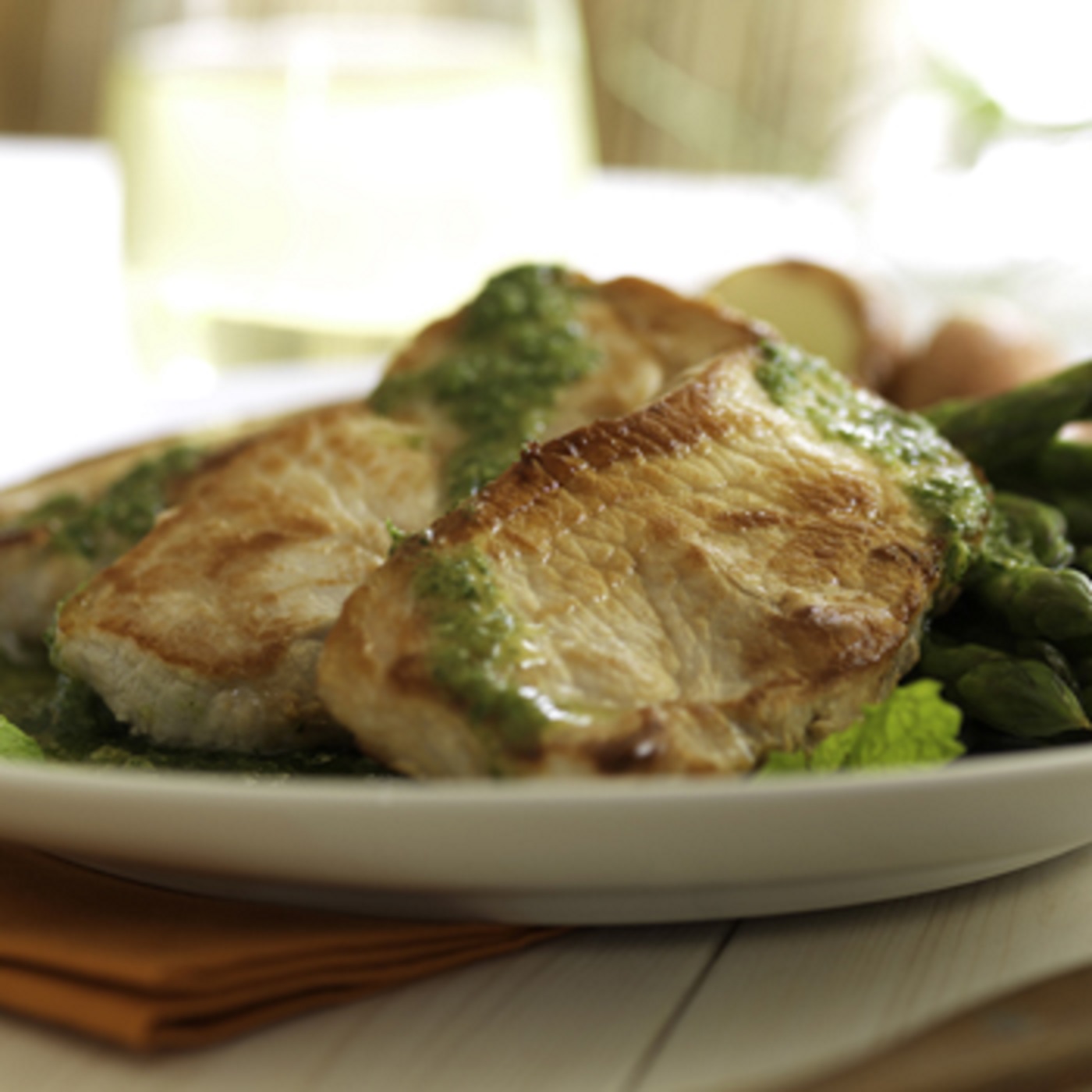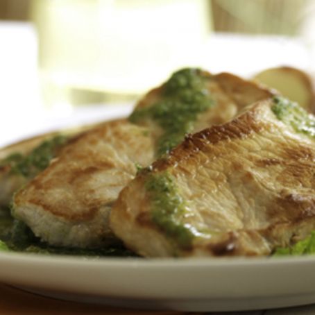 Lomo de cerdo al pesto de perejil y almendras con manzanas