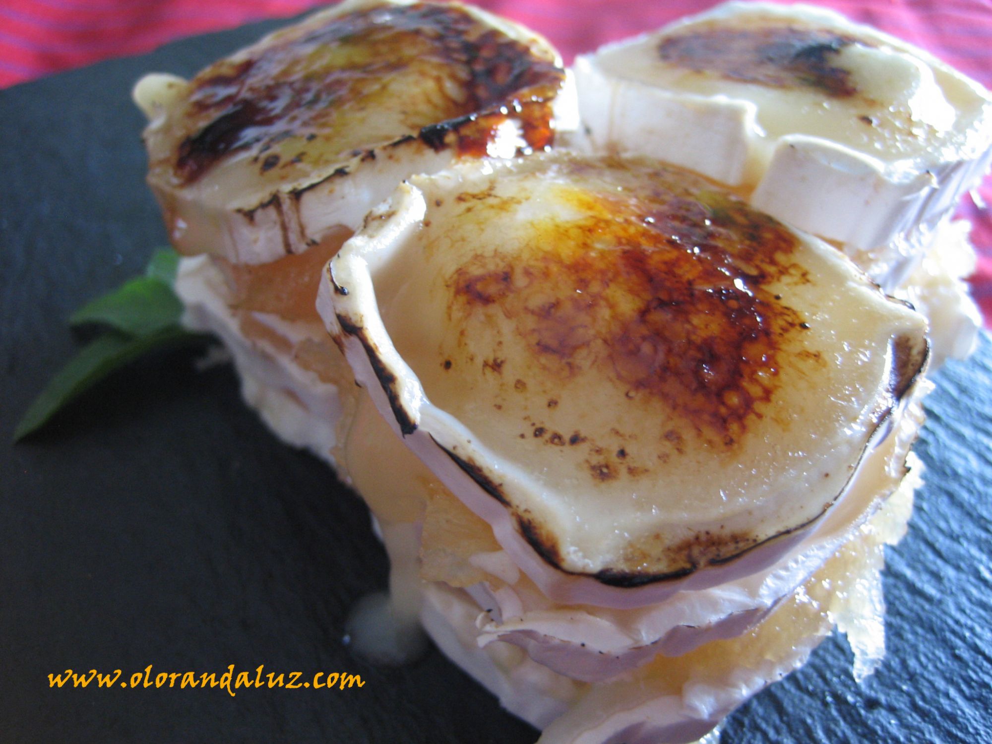 Hemos formado torres o milhojas y hemos terminado caramelizando la parte superior, con lo que nos queda un aperitivo muy rico.