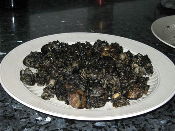 Añade el calamar y las hebras de azafrán. Mezcla todo bien y prueba de sal. Deja a fuego fuerte unos 10 minutos y luego baja a fuego medio. No remuevas el arroz mientras se hace.