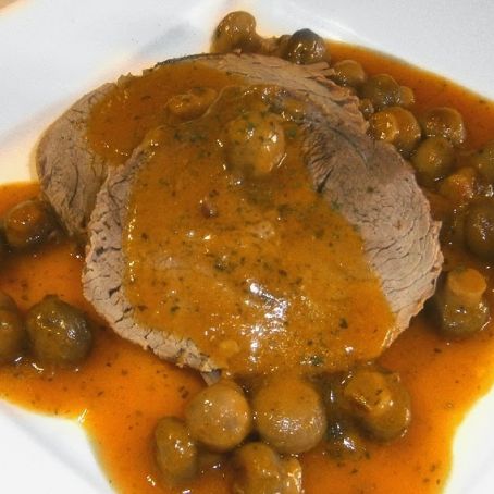 Para servir, cortamos el redondo en rodajas y regamos con la salsa.