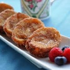 SE CALAN LAS GALLETAS CON LECHE Y SE LE PONE FLAN SE UNEN DOS Y SE BAÑAN EN HUEVO Y SE FRIEN Y DESPUES SE PASAN POR AZUCAR