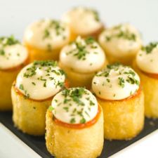 Escorrem les pataques en paper de cuina, les salem i les cobrim amb la salsa brava.