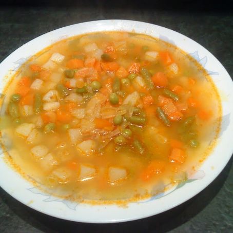 Sofregim amb l'oli les verdures (comencem amb les més dures i acabem per les més blanes) a foc lent durant, aproximadament, 30 minuts.