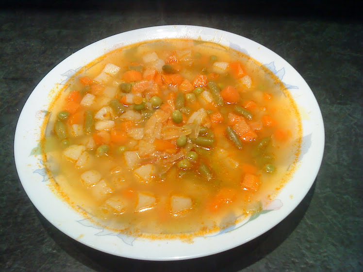 Afegim l'aigua i ho deixem bullir 12 - 15 minuts. (Quan les verdures estiguin blanes), posem sal si volem.