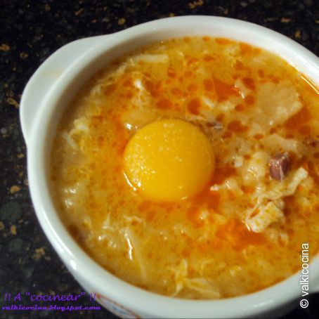 Así tal cual buenísima, pero si quieres añadirle huevo, te explico: separa las claras de la yemas, y echa las claras en la sopa hirviendo...remueve bien, y deja unos segundos hasta que se pongan blancas.