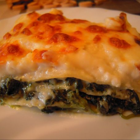 En una font de forn, cobrim el fons amb una mica de beixamel, posem les plaques de lasanya, la mescla que hem fet amb els espinacs, formatge en rodanxes emmental, i una mica de tomàquet fregit.