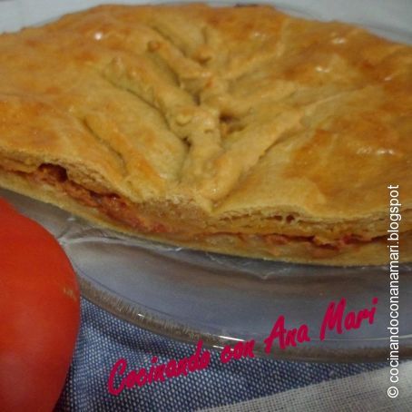 Pues ya solo nos falta preparar la empanada, partimos la masa en dos, la estiramos bien y le ponemos el relleno , después le ponemos la otra parte y la sellamos bien, ya solo nos queda pintarla con huevo y adornarla con los trocitos que nos hayan sobrado de la masa.