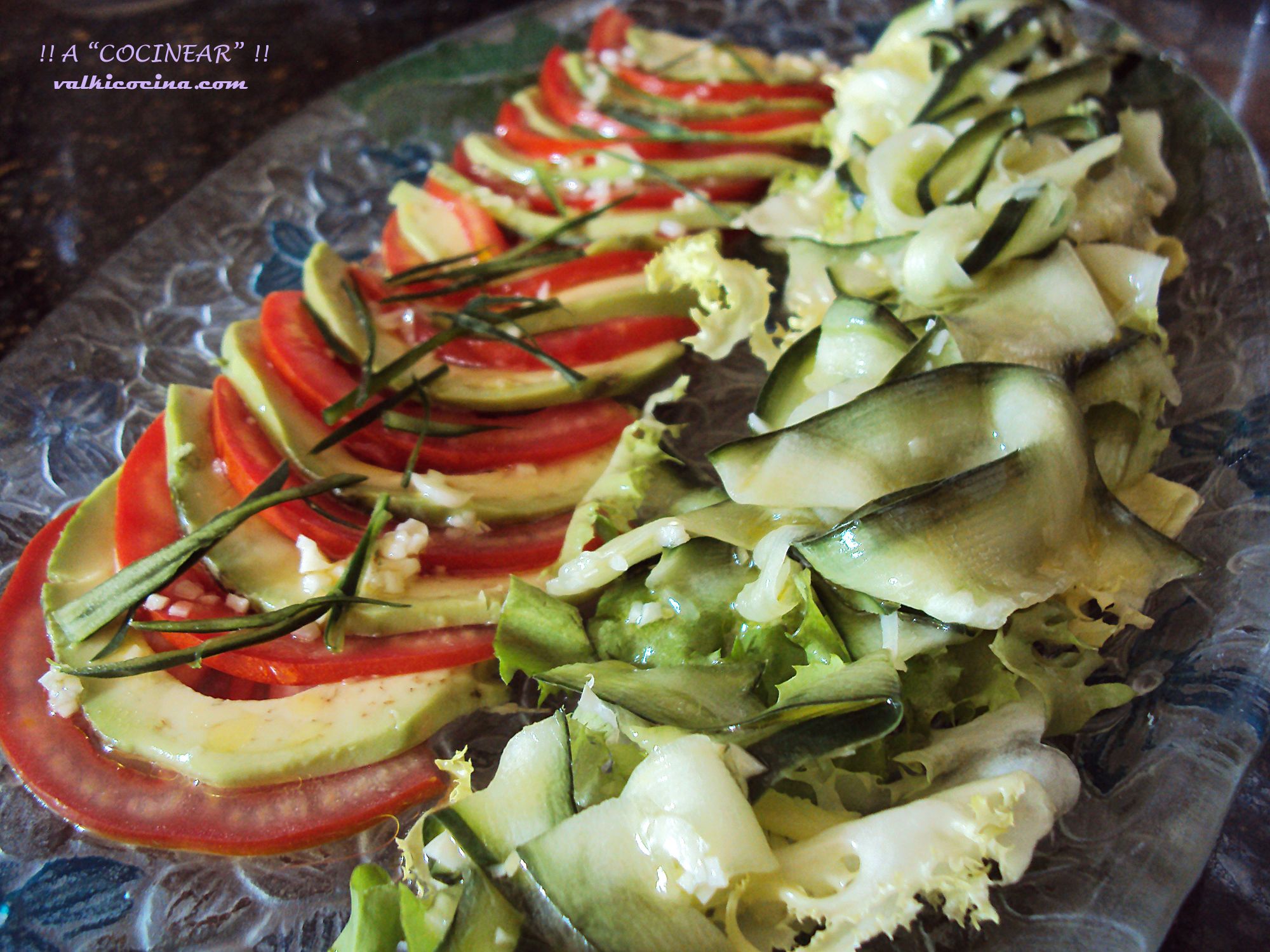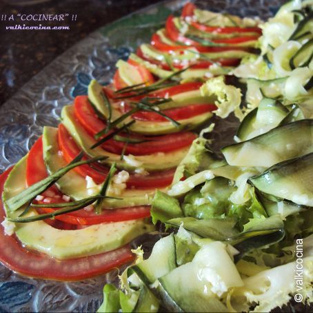 Ensalada de carpaccio de aguacate con pepino aliñado
