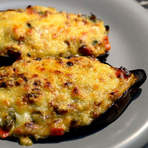 Berenjenas rellenas de pollo al horno