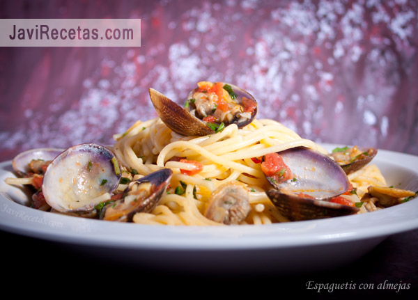 Como siempre que usemos almejas frescas lo primero que hay que hacer es preparar las almejas para que suelten toda la arena. Tienes que dejarlas en remojo con sal 1 hora y cambiarles el agua un par de veces (total 2 horas). Luego sácalas del agua y ponlas en un escurridor bajo el chorro del grifo para que el agua arrastre cualquier resto que quede pegado a las almejas.