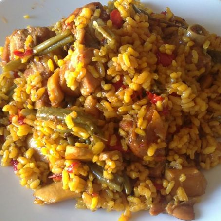 Quan la carn comenci a estar tendra incorporar l' arròs , repartint bé per tota la paella .