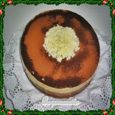 Cuando vayamos a servir decoramos con cacao en polvo y lo que más nos guste, yo puse unas láminas de chocolate blanco por el centro.