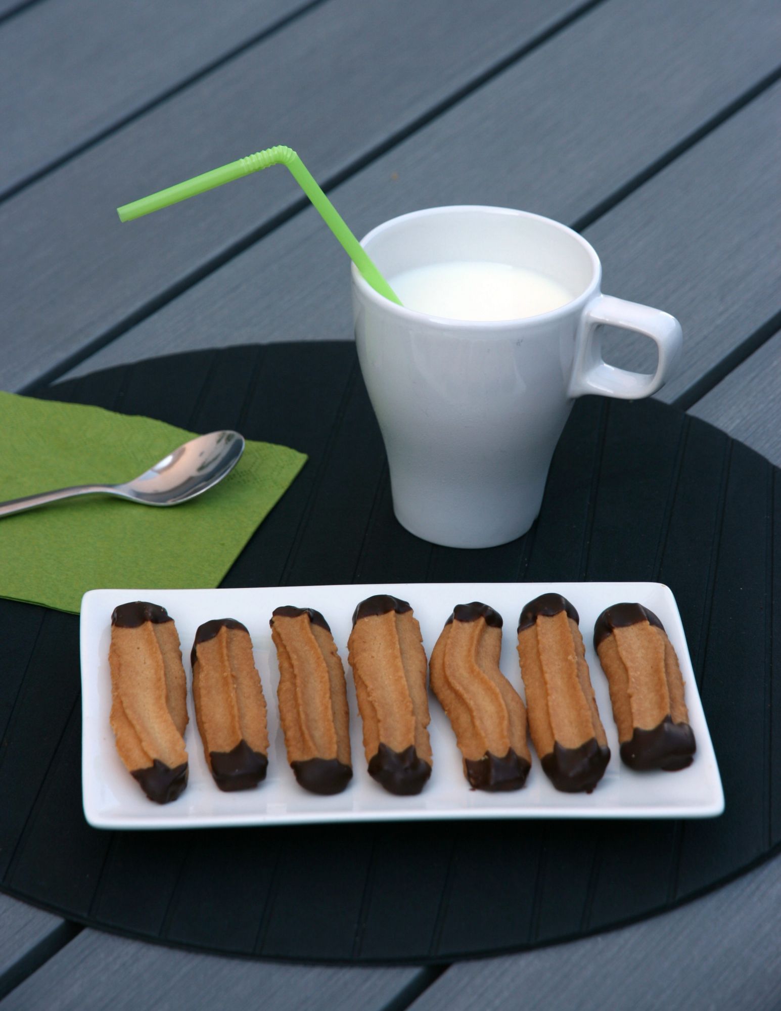 8. Poner el chocolate al baño maría hasta que se deshaga y cuando esté caliente pero sin estar muy líquido es cuando podremos ir untando las puntitas.