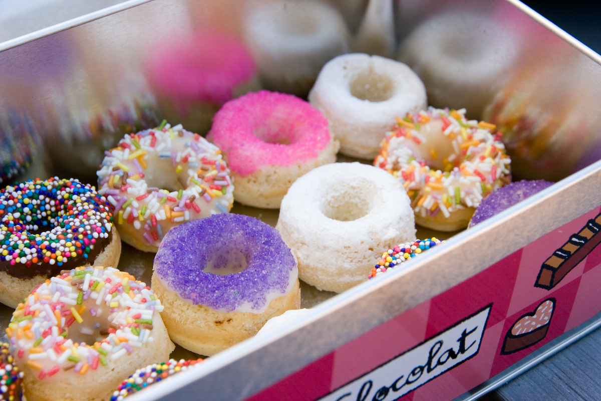 Podéis deshacer un poco de chocolate al baño maría (yo suelo utilizar chocolate Valor 70%) o bien glasearlos (1 taza de azúcar glas, una cucharada de leche y media cucharadita de extracto de vainilla opcional). Para este glaseado deberemos mezclar rápidamente y aplicar en el donut con un pincel. Después le podemos añadir sprinkles de colores o incluso el azúcar teñido por encima.
