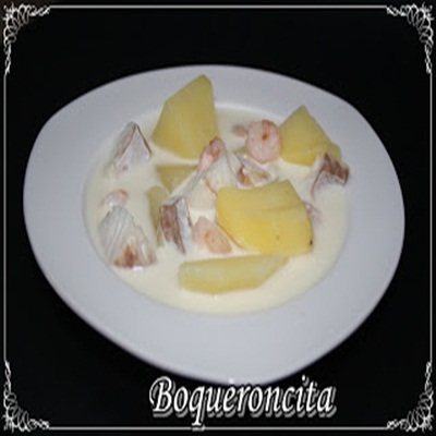 Hay quien le pone almejas, guisantes, un poco de arroz con la patatas........ etc en cada casa se hace de una manera.