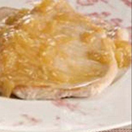Reparte la carne en 4 platos, añade la cebolla y el jugo de la cocción y sirve enseguida, con el puré aparte.