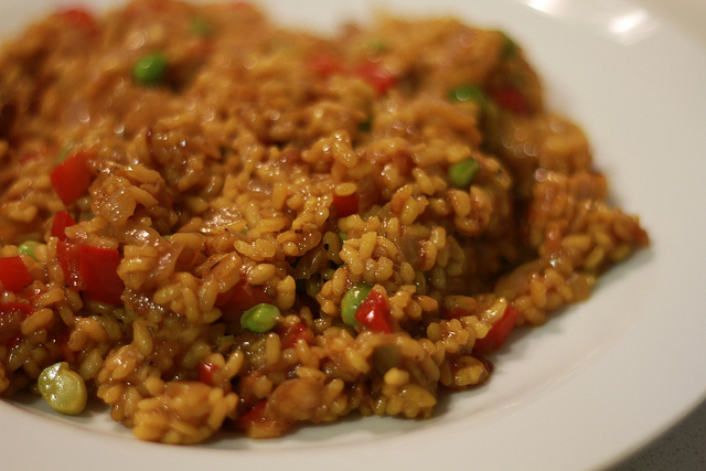 Mezcla el azafrán reservado con algo de caldo y añade el caldo a la cazuela (recuerda que lo ideal es, por cada parte de arroz, añadir dos de agua o caldo). Sube la temperatura al máximo hasta que empiece a hervir y, acto seguido, baja a la mitad mpara que se haga poco a poco (unos 16 minutos aproximadamente).