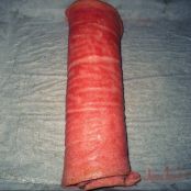 Después lo destapamos y lo despegamos del papel con ayuda de un cuchillo. Ponemos sobre del bizcocho la mermelada Hero de frambuesa y lo enrollamos.