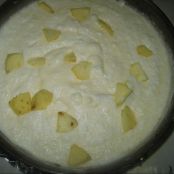 Pelamos y cortamos la manzana en pequeños trozos y los repartimos por la superficie.
