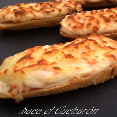 Espolvoreamos con el queso rallado cada uno de los canapés y los gratinamos unos minutos para que tomen un color dorado.