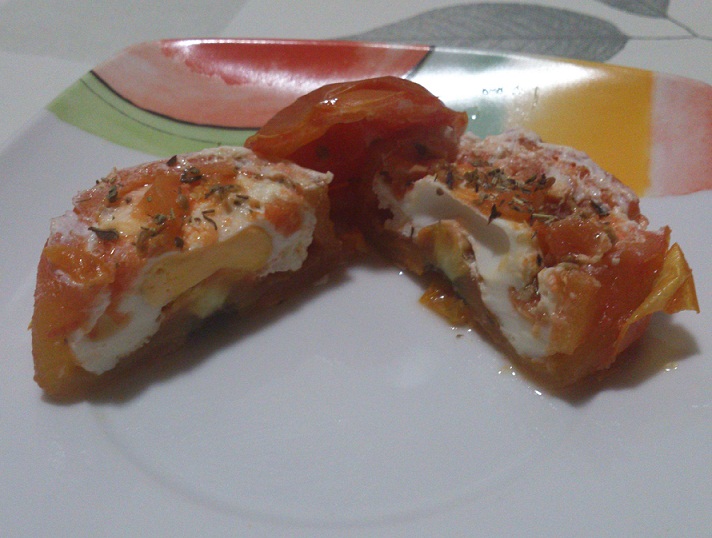 Cogemos los tomates, los salamos por dentro y le echamos un huevo dentro con un poquito de sal. Quitamos un poco de clara para que quede suficiente espacio para añadir la pulpa del tomate por encima del huevo. La pulpa la escurrimos un poco antes de meterla dentro del huevo. Le damos otro toquecito de hierbas provenzales y le ponemos la tapa. (se le puede añadir atún para darle más sabor)