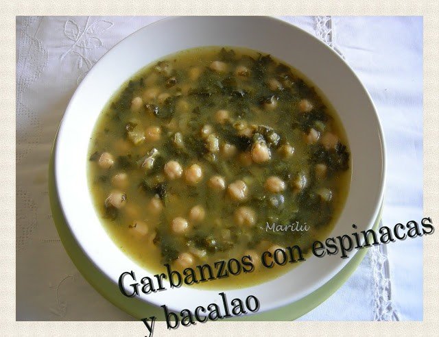 Mientras se hacen los garbanzos,lavamos y picamos las espinacas,Les damos un hervor y las escurrimos.
