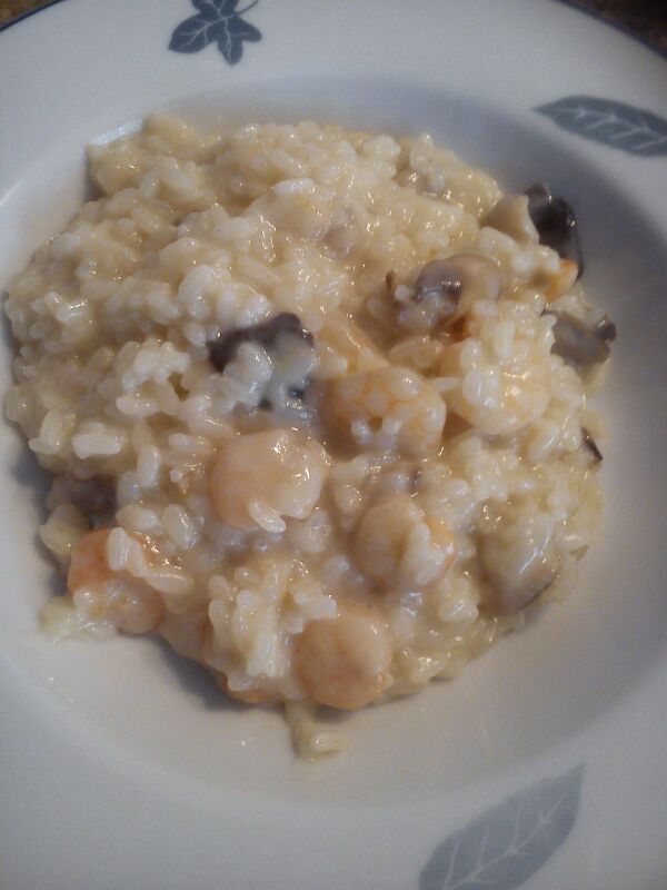 Colocamos la mariposa en las cuchillas, añadimos las gambas, los ceps, un pellizco de sal y un pellizco de pimienta. Programamos 5 minutos/ varoma/ giro izquierda / velocidad cuchara.