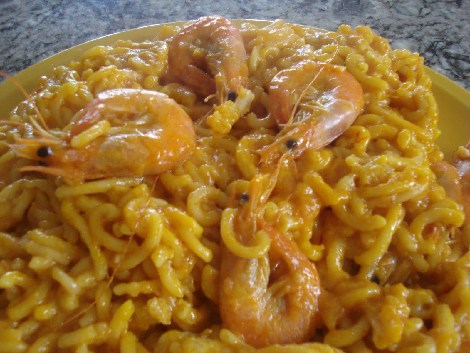 Para terminar: agregue el caldo reservado, la sal y el azafrán, programando 7 minutos, temperatura Varoma, velocidad 1. Cuando empiece a hervir, añada los fideos y programe 11 minutos, temperatura 100°, velocidad 1.