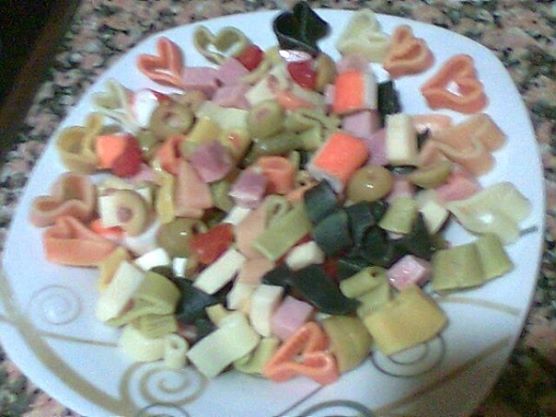 Mientras, en un plato o fuente añadimos el resto de ingredientes y mezclamos. Cuando la pasta este hecha, la escurrimos y la ponemos junto al resto de ingredientes y volvemos a mezclar