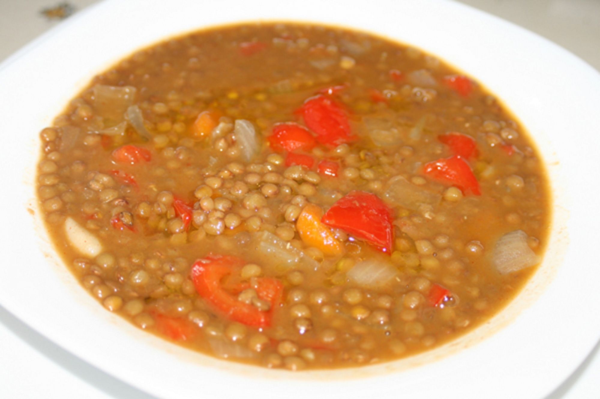 Dejamos que se cocinen lentamente a temperatura media durante la siguiente media hora, removiendo de vez en cuando con una cuchara de madera. La última media hora cocinamos las lentejas a fuego lento probando de vez en cuando por si no necesitaran más cocción.