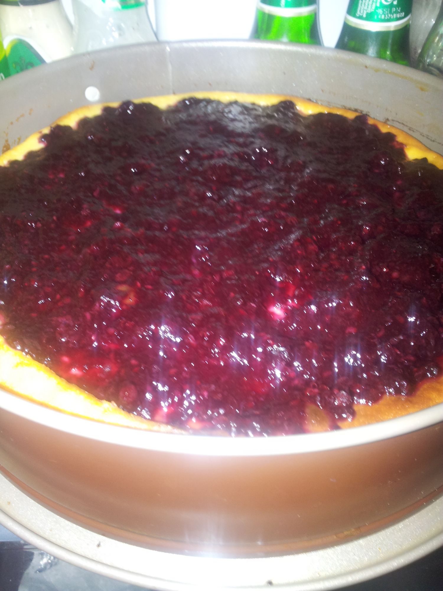 Cuando esté todo bien frío añadimos la mermelada por arriba y volvemos a meter la tarta en el frigorífico hasta la hora de servirla.