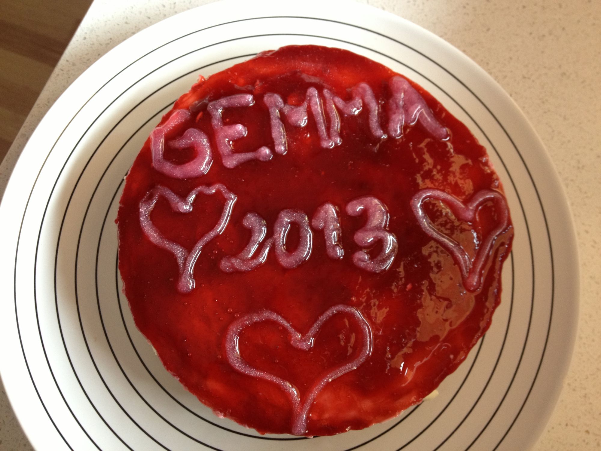 esta es mi tarta de queso con mermelada de fresa hero es genial y facil de hacer