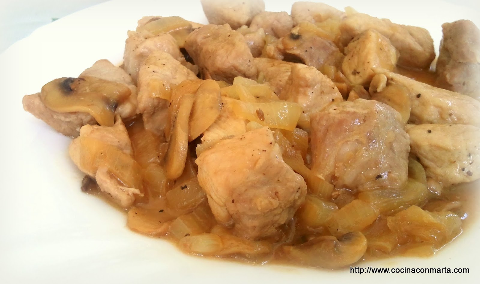 Lomo encebollado con champiñones