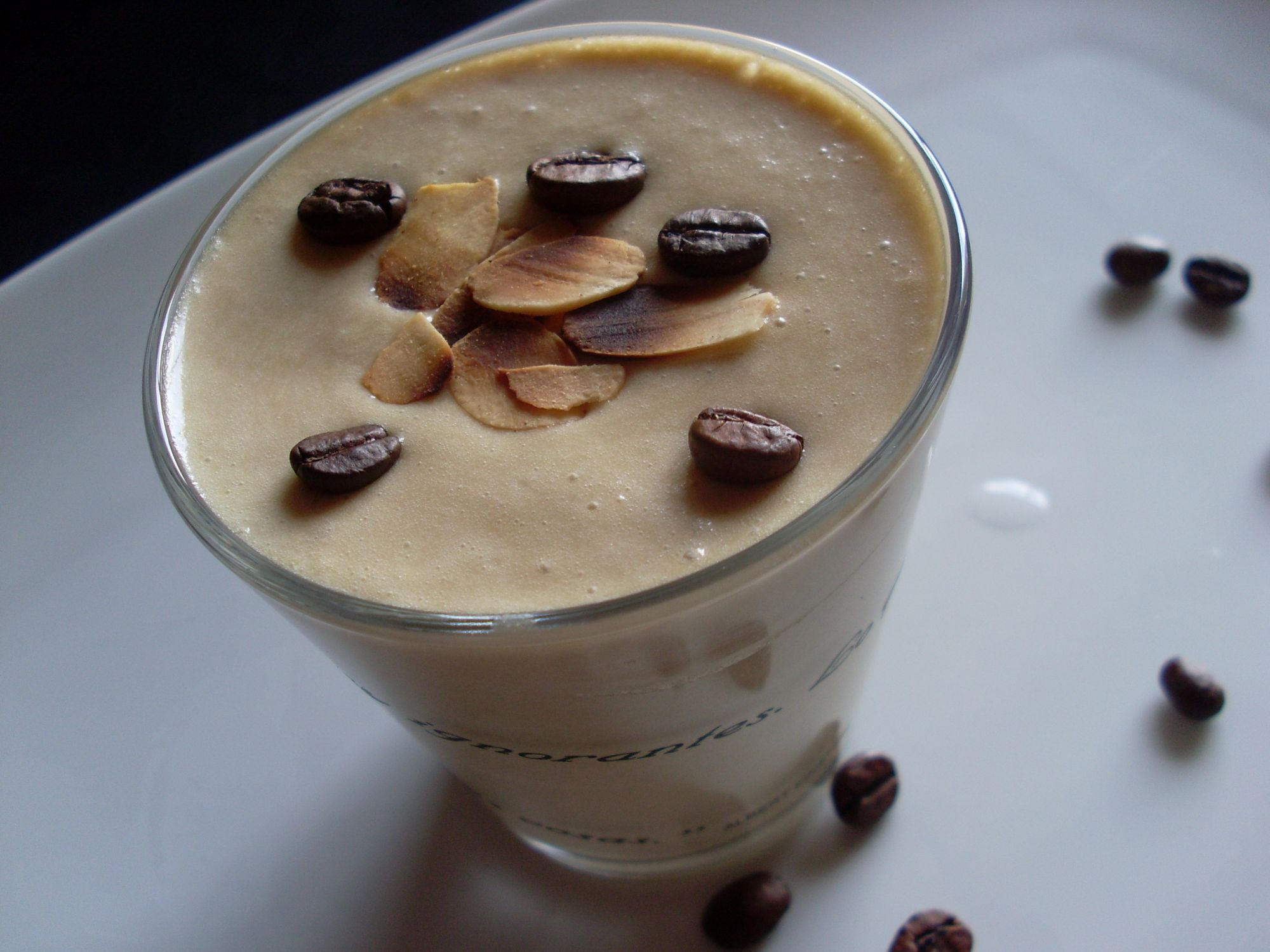 ..Servimos en copas individuales,y las metemos en la nevera unas dos horas..En el momento de servir decoramos con granos de café y almendras laminadas y tostadas,